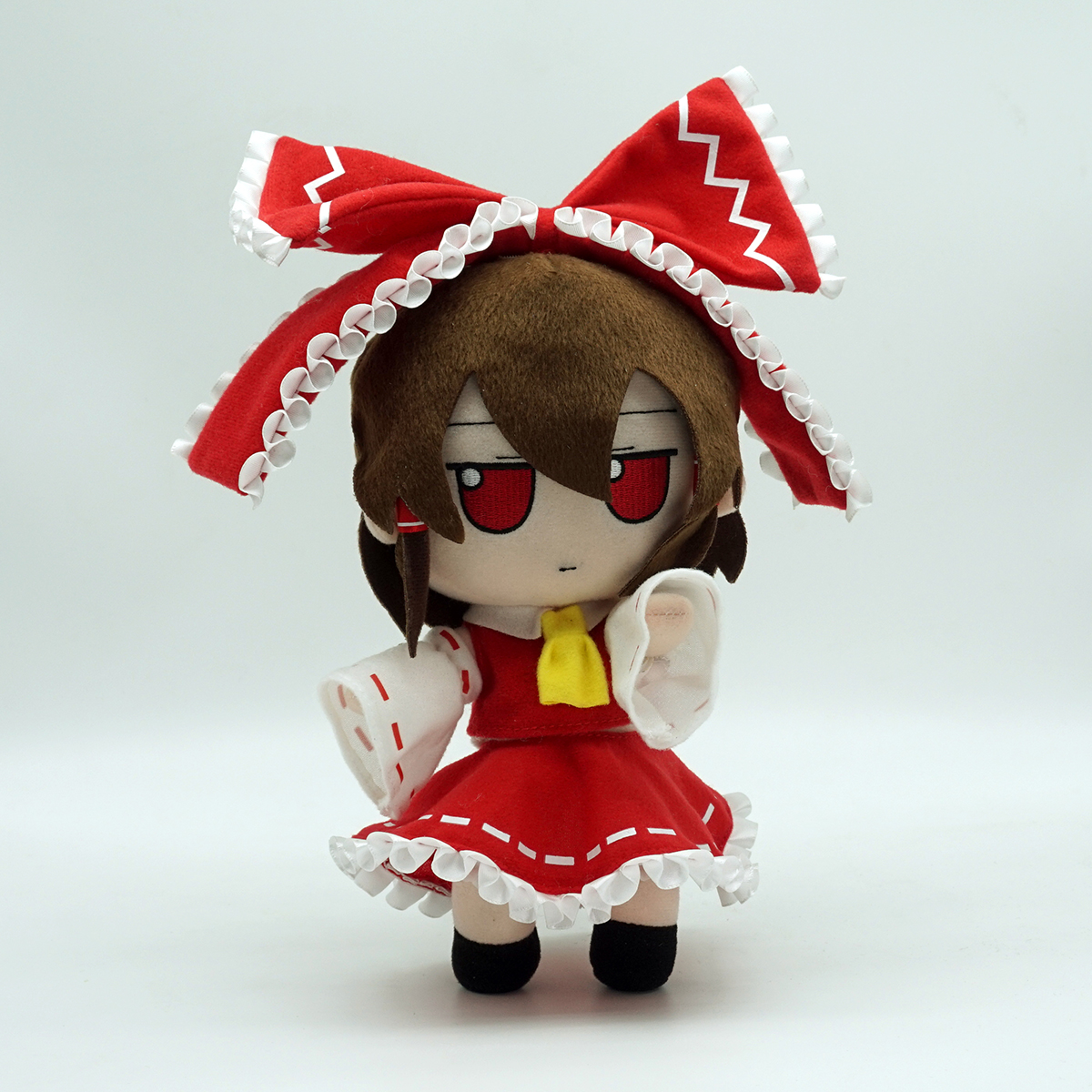 This premium plush features Reimu's iconic crimson-and-white shrine maiden outfit, but with intricate skull embroidery and patterns that set this variant apart. Her hair is adorned with her signature ribbons, and a delicate, stylized skull hairclip adds a subtle yet impactful detail. Every element, from the "Hakurei" symbol on her back to the detailed skull face, is rendered in soft-touch fabric with expert craftsmanship. Whether she's exorcising spirits or resting on your shelf, Reimu (Skull Ver.) is an essential, conversation-starting centerpiece for any Touhou Project enthusiast seeking the most unique pieces. 🌀